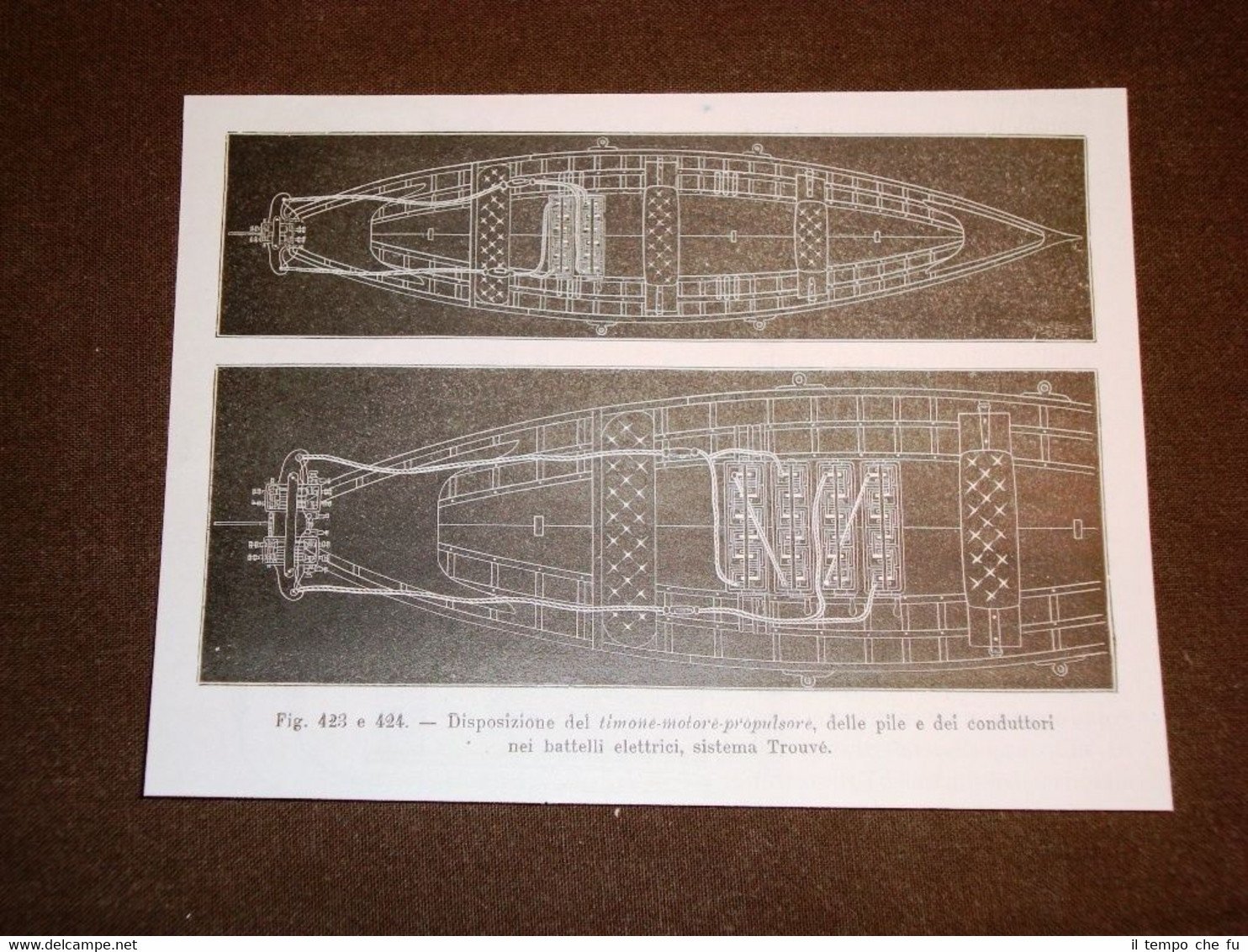 Rara stampa Estratta da Rivista d'epoca di fine 1800 La Marina nella storia Battello elettrico con sistema Trouvé Disposizione del timone, motore, propulsore, pile e conduttori Nav-014 Dimensioni Cm 14,00 x 11,00 Qualora vogliate delle scansioni migliori contattateci, soddisferemo ogni vostra richiesta. PaypalCarta di creditoBonifico bancario Accuratamente adagiate su un cartoncino e protette da pellicola trasparente rigida,il tutto viene inserito dentro plico di adeguate dimensioni per proteggerne l'integrità.