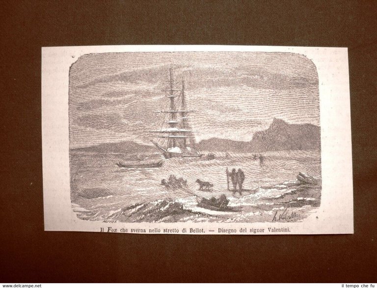 Rara incisione estratta da pubblicazione d'epoca del 1863. .incisione che ha quindi oltre 155 anni! La nave Fox nello Stretto di Bellot nel 1863 Oceano Artico Kitikmeot Nunavut GDM-017 Dimensioni Cm 15,00 x 9,00 Qualora vogliate delle scansioni migliori contattateci, soddisferemo ogni vostra richiesta. Paypal Carta di credito Bonifico bancario Accuratamente adagiate su un cartoncino e protette da pellicola trasparente rigida, il tutto viene inserito dentro plico di adeguate dimensioni per proteggerne l'integrità.