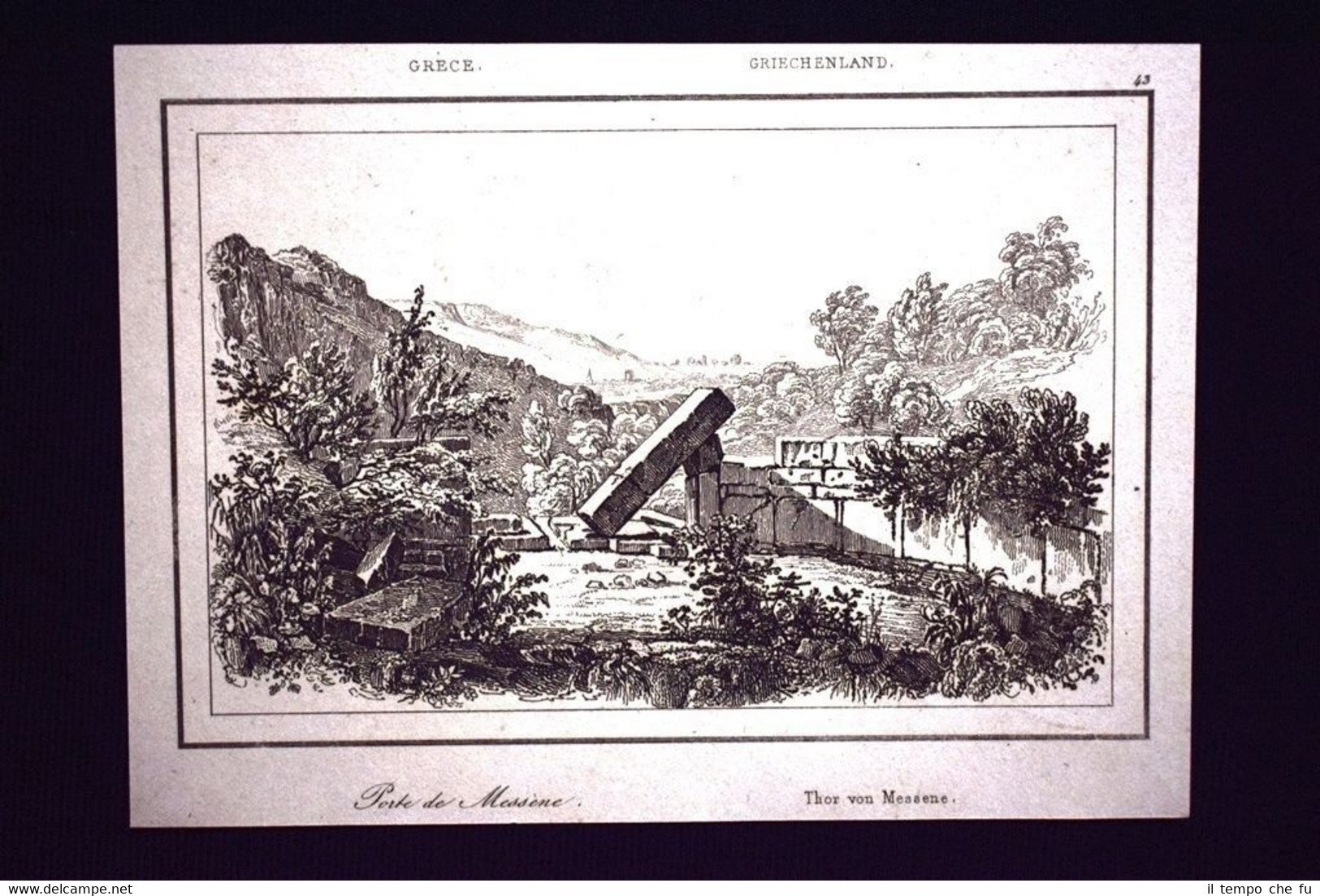 La porta della città di Messene, Grecia Incisione del 1850 L'Univers pittoresque