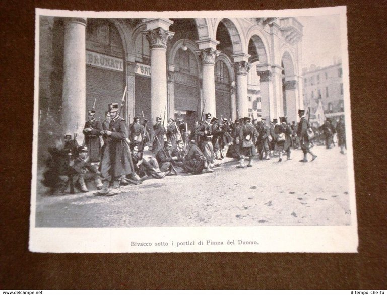 Rara Stampa Estratta da Rivista d'epoca del 1898 La Rivolta di Milano del 1898 Bivacco sotto i Portici del Duomo II1898-021T Cm 15,00 x 12,00 Qualora vogliate delle scansioni migliori contattateci, soddisferemo ogni vostra richiesta. Paypal Carta di credito Bonifico bancario Accuratamente adagiate su un cartoncino e protette da pellicola trasparente rigida il tutto viene inserito dentro plico di adeguate dimensioni per proteggerne l'integrità