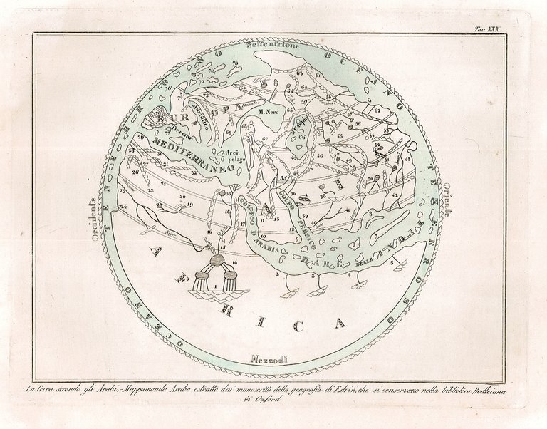 La Terra secondo gli Arabi: -Mappamondo Arabo estratto dai manoscritti della geografia di Edrisi, che si conservano nella biblioteca Bodleiana in Oxford