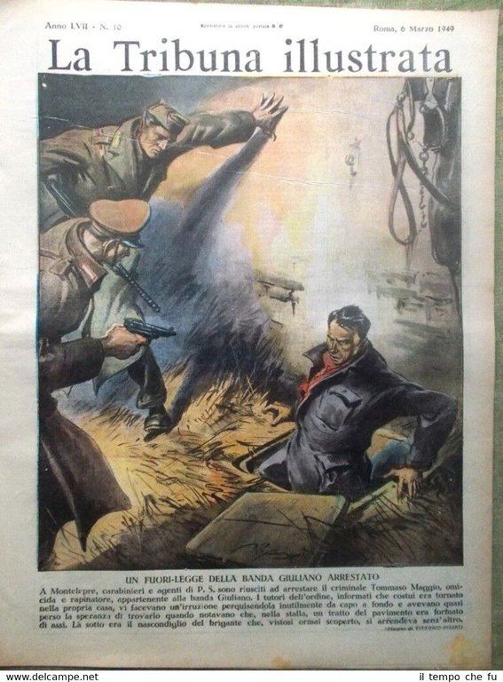 La Tribuna Illustrata Rivista originale del 6 Marzo 1949 Anno 57 - N. 10 Rarità per appassionati e collezionisti Seguono solo alcuni dei fatti descritti, illustrati e fotografati all'interno Illustrato in copertina (segue foto): Un fuorilegge della banda di Giuliano arrestato: catturato Tommaso Maggio (disegno di Vittorio Pisani) Illustrato nella retro copertina (segue foto): Nell' Ogaden e nell'Harrarino, di fronte alle locali angherie dei Ras ritornati al potere, le forze di polizia provinciale vengono a conflitto con le truppe regolari tratte dai villaggi musulmani dell'interno. (disegno di Vittorio Pisani) Nelle pagine interne: Tutta cinecittà ne parla: Anna Magnani, Silvana Pampanini, John Kitzmiller, Isa Miranda, Louis Haward. Sport: il finimondo per una gamba rotta. Prime ed ultime pagine di Vittorio Emanuele III (7^ puntata): la morte per i viali di Monza. Gail Russel, l'amore può aspettare. Trombadori: Strohl-Fern, l'ospite alsaziano. .e tanto altro ancora! Qualora vogliate maggiori delucidazioni contattateci In questo negozio troverai un'intera categoria dedicata alle Tribune Illustrate, sotto il link diretto alla collezione: Riviste disponibili Cliccaci sopra, troverai di certo ciò che cerchi! La Tribuna Illustrata fu un settimanale italiano pubblicato a Roma. Insieme a La Domenica del Corriere e a L'Illustrazione Italiana fu il settimanale illustrato preferito dagli Italiani nel periodo che intercorse dalla fine dell'800 all'avvento della televisione. Fondato nel 1890 come supplemento del quotidiano La Tribuna, il primo numero uscì il 6 gennaio, il formato della rivista era cm 27 x 38, un formato poco più grande del tabloid. La prima ed ultima pagina erano a colori, disegnate da pittori e incisori affermati. Ogni numero conteneva 16 pagine. I principali collaboratori furono: Luigi Capuana, Adolfo De Bosis, Alfredo Fabrizi, Gandolin, Giuseppe Giacosa, Attilio Luzzato, Enrico Panzacchi, Rastignac, Attilio Sarfatti, Armand Silvestre, Ettore Socci, Gaspare Ungarelli, Pio Vanzi, Annie Vivanti. Il Corredo iconografico fu di prim'ordine. I principali pittori, disegnatori ed illustratori furono: Basilio Cascella e i figli Tommaso e Michele, Enrico Lionne, Aleardo Terzi, Augusto Bompiani, Roberto Bompiani, Domenico Bruschi, Modesto Faustini, Rubens Santoro, Rafael Senet, Cesare Tiratelli. Tra i romanzi a puntate che vi uscirono ricordiamo: L'invincibile, di Gabriele D'Annunzio Una giovinezza, di Francois Coppée e Zia Aurelia di André Theuriet, questi ultimi due entrambi illustrati da Emile Bayard. Paypal Carta di credito Bonifico bancario Spedizione con posta prioritaria o raccomandata scelta dall'acquirente nel momento del pagamento
