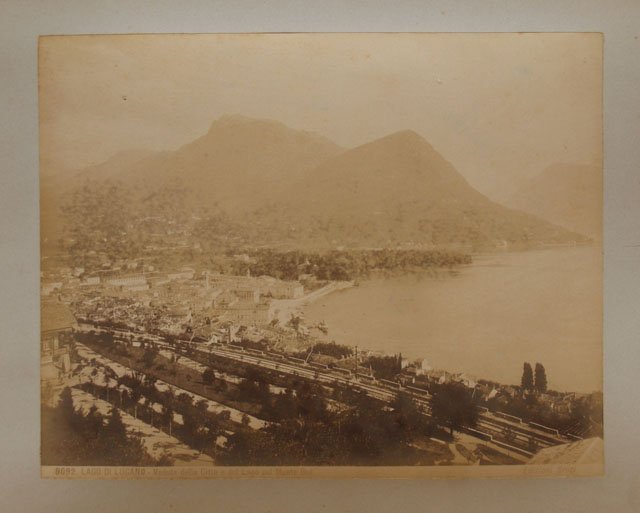 Lago di Lugano - Veduta della Città e del Lago col Monte Bre | Prints | Brogi Ediz.