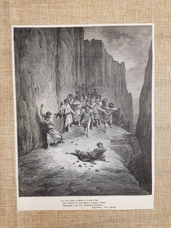 Lapidazione Santo Stefano Divina Commedia Purgatorio Incisione Gustave Doré 1887 Rara incisione estratta da pubblicazione del 1887 Dante che sogna la lapidazione di Santo Stefano Divina Commedia Purgatorio Incisione di Gustave Doré Codice prodotto: VIP-203 Dimensioni Cm 21,00 x 28,00