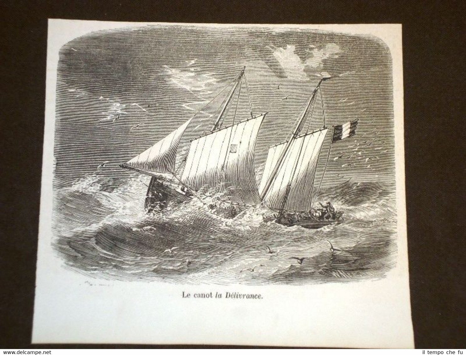 Rara Incisione Estratta da Rivista d'epoca del 1857 Le canot La Délivrance MI1857-004T Dimensioni Cm 14,00 x 12,50 Qualora vogliate delle scansioni migliori contattateci, soddisferemo ogni vostra richiesta. Paypal Carta di credito Bonifico bancario Accuratamente adagiate su un cartoncino e protette da pellicola trasparente rigida il tutto viene inserito dentro plico di adeguate dimensioni per proteggerne l'integrità