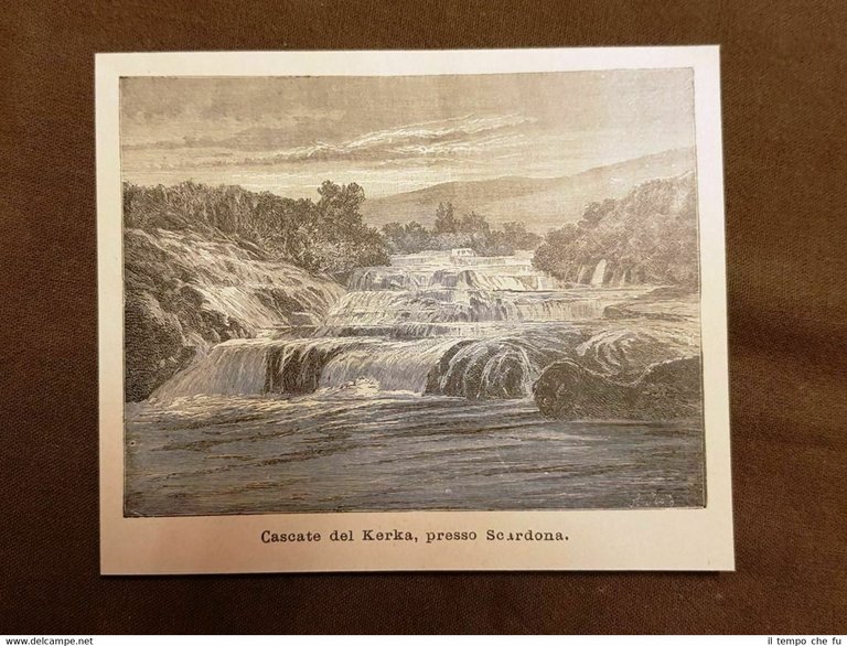 Rara stampa estratta da pubblicazione del 1896. .stampa che ha quindi oltre 124 anni! Le Cascate di Kerka nel 1896 Scardona Croazia Codice articolo: NEDA-039 Dimensioni: Cm 11,00 x 9,00 Paypal Carta di credito Bonifico bancario Spedizione con posta ordinaria o raccomandata scelta dall'Acquirente nel momento del pagamento Clicca qui per accedere al nostro Store ed al suo sterminato archivio
