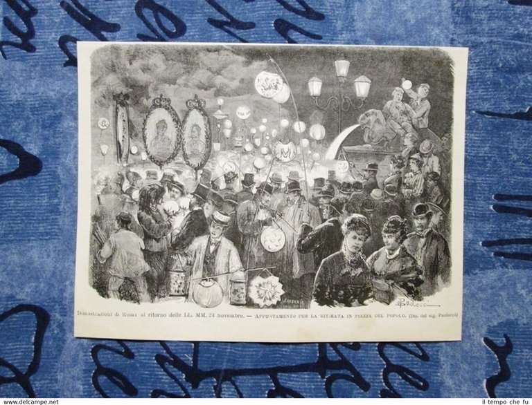 Rara Incisione Estratta da Rivista d'epoca del 1878.incisione che ha quindi oltre 136 anni! Le dimostazioni di Roma al ritorno delle loro maestà Umberto I e Margherita di Savoia il 24 novembre 1878Appuntamento per la ritirata in Piazza del Popolo II1878-021 Dimensioni Cm 23,00 x 17,00 Qualora vogliate delle scansioni migliori contattateci, soddisferemo ogni vostra richiesta. PaypalCarta di creditoBonifico bancario Accuratamente adagiate su un cartoncino e protette da pellicola trasparente rigida,il tutto viene inserito dentro plico di adeguate dimensioni per proteggerne l'integrità.