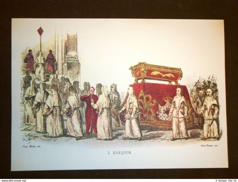 Mestieri, moda e costume di Napoli antica Le esequie o funerale Tavola su cartoncino non retroscritto tratta da: "Usi e costumi di Napoli e contorni descritti e dipinti" Opera diretta da Francesco de Bourcard Ristampa anastatica del 1990 della pubblicazione originale del 1857 e 1866 Dimensione: Cm 24,00 x 17,00 Merian - 027 Francesco De Bourcard è un editore italiano di origine napoletana, noto soprattutto per aver coordinato l'edizione di Usi e costumi di Napoli e contorni descritti e dipinti, una delle opere fondamentali della descrizione della città di Napoli e dei suoi abitanti. Se ne hanno poche notizie biografiche. Proveniente da una famiglia svizzera originaria di Basilea, era nipote del Maresciallo Emanuele Burckhardt (il cognome fu poi francesizzato in De Bourcard), capitano generale del Regno di Napoli, distintosi nella Guerra dei sette anni e nella conquista di Roma (1798-1799). Appassionato studioso della vita quotidiana della città, De Bourcard si dedicò per circa vent'anni, dal 1847 al 1866, alla stesura dell'opera che lo rese famoso (la comparsa del primo volume avvenne nel 1853), nell'ambito della quale sono ritratte le usanze del tempo, i personaggi tipici del popolo, ed un'ampia carrellata di feste popolari e religiose. Ai testi si accompagnano cento litografie che illustrano in forma grafica i soggetti descritti nei capitoli. La particolarità dell'opera sta soprattutto nella grande levatura dei partecipanti, sia scrittori che artisti. Tra i primi spiccano Giuseppe Regaldi, Carlo Tito Dalbono, Francesco Mastriani, Emmanuele Rocco, Emmanuele Bidera, Enrico Cossovich tra i secondi Teodoro Duclère, Giacomo Ghezzi, Tommaso Altamura, Nicola Palizzi ed il suo grande fratello Filippo Palizzi, il quale disegnò circa la metà delle tavole (quarantasette su cento). Qualora vogliate delle scansioni migliori contattateci, soddisferemo ogni vostra richiesta. PaypalCarta di creditoBonifico bancario Accuratamente adagiate su un cartoncino e protette da pellicola trasparente rigida,il tutto viene inserito dentro plico di adeguate dimensioni per proteggerne l'integrità.