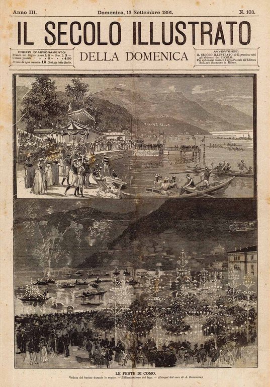 Le feste di Como - Veduta del bacino durante le regate - L'illuminazione del lago
