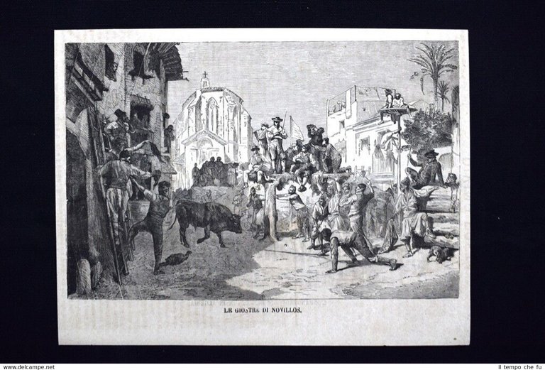 Le giostre di Novillos+L'orfanotrofio di Ben-Aknum in Algeria Incisione del 1871