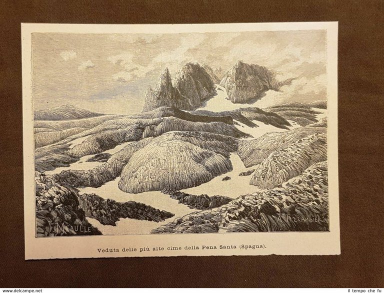 Rara stampa estratta da pubblicazione del 1896. .stampa che ha quindi oltre 124 anni! Le più alte cime della Pena Santa nel 1896 Veduta Spagna Codice articolo: NEDA-041 Dimensioni: Cm 15,00 x 12,00 Paypal Carta di credito Bonifico bancario Spedizione con posta ordinaria o raccomandata scelta dall'Acquirente nel momento del pagamento Clicca qui per accedere al nostro Store ed al suo sterminato archivio