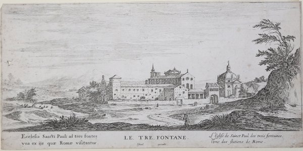 Veduta tratta dalla serie ' Les stations de Rome. ' Il Silvestre, incisore e disegnatore, nasce a Nancy nel 1621. Come era consuetudine all'epoca, fece diversi viaggi in Italia per copiare i vecchi maestri e per migliorare le sue abilità con i più grandi maestri. Faucheux fissa le date di questi viaggi, il primo prima del 1640 (Israel non aveva ancora 20 anni), il secondo dal 1643 al 1644 e l'ultimo intorno al 1653. Israel portò con sé molte vedute dell'Italia, quasi tutte incise. Fino al 1659, fece altri viaggi in Francia e in Lorena, da cui trasse molti disegni e incisioni. Il suo stile fu, all'inizio, piuttosto sciolto, ma dal 1643 in poi divenne più raffinato e delicato, acquisendo accuratezza e precisione senza essere asciutto, risultando a volte simile a quello di Jacques Callot o di Stefano della Bella, con i quali ebbe rapporti di amicizia attraverso il suo zio materno e mentore, l’editore Israël Henriet. Accanto alle testimonianze per la Roma antica mostrò ben presto un grandissimo interesse per la città "moderna", divenendo uno dei precursori del vedutismo - non solo nel campo incisorio - anticipando artisti come Lievin Cruyl e Gaspar van Wittel. È praticamente impossibile fare un inventario completo delle opere di Israël Silvestre, tanto era prolifico l'artista. Ha lasciato numerosi disegni e più di mille incisioni. Tra le sue opere più belle, possiamo tuttavia menzionare le numerose e complesse “piccole” suite (composte da poche tavole) sulle piazze, le chiese e le antichità di Roma. Acquaforte, in ottimo stato di conservazione. Bibliografia L. E. Faucheux, Catalogue raisonné de toutes les estampes qui forment l'oeuvre d'Israel Silvestre: précédé d'une notice sur sa vie (1857), n. 2.10; F. Baré, Israël Silvestre et sa famille, suivi du catalogue de son oeuvre (1885), n. 816. View taken from the series ' Les stations de Rome. ' Les stations de Rome, suite of 10 numbered pieces, not including the title. The inscriptions of this suite are in French (italic characters) and in Latin (Roman characters). The title of each piece which separates the Latin inscription from the French inscription is in Italian and in large characters. Silvestre, engraver and draftsman, was born in Nancy in 1621. As was customary at the time, he made several trips to Italy to copy the old masters and to improve his skills with the greatest masters. Faucheux fixes the dates of these trips, the first before 1640 (Israel was not yet 20 years old), the second from 1643 to 1644 and the last around 1653. Israel brought with him many views of Italy, almost all of them engraved. Until 1659, he made other trips to France and Lorraine, from which he took many drawings and engravings. His style was, at the beginning, rather loose, but from 1643 onwards became more refined and delicate, acquiring accuracy and precision without being dry, resulting sometimes similar to that of Jacques Callot or Stefano della Bella, with whom he had friendly relations through his maternal uncle and mentor, the publisher Israël Henriet. Alongside the testimonies to ancient Rome, he soon showed great interest in the "modern" city, becoming one of the precursors of vedutism - not only in the field of engraving - anticipating artists such as Lievin Cruyl and Gaspar van Wittel. It is quite impossible here to make a complete inventory of Israël Silvestre's works, so prolific was the artist. He left numerous drawings and more than a thousand engravings. However, among his most beautiful works, we can mention the many complex "small" suites (composed of a few plates) on the squares, churches and antiquities of Rome. Etching, in excellent condition. Bibliografia L. E. Faucheux, Catalogue raisonné de toutes les estampes qui forment l'oeuvre d'Israel Silvestre: précédé d'une notice sur sa vie (1857), n. 2.10; F. Baré, Israël Silvestre et sa famille, suivi du catalogue de son oeuvre (1885), n. 816. Cfr.
