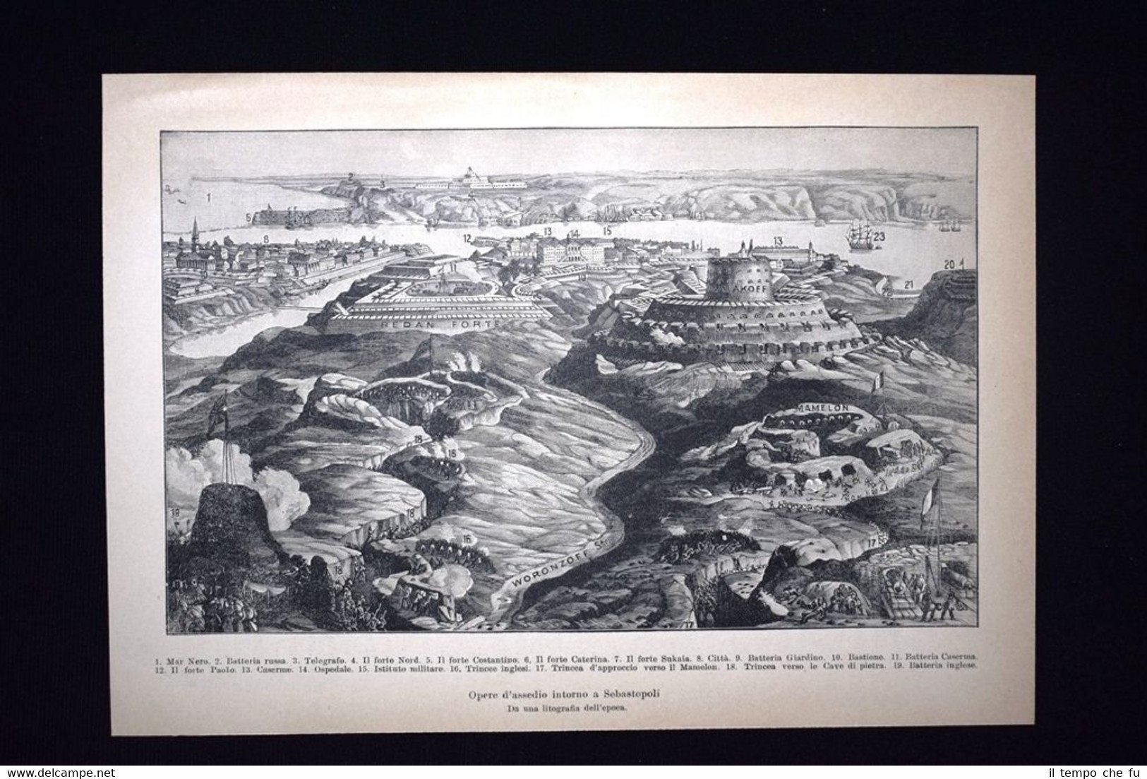 Rara stampa Estratta da introvabile e pregiata opera d'epoca dei primissimi del 1900 Litografia delle opere d'assedio intorno a Sebastopoli KXIX-035 Dimensioni Cm 24,00 x 17,00 Qualora vogliate delle scansioni migliori contattateci, soddisferemo ogni vostra richiesta. PaypalCarta di creditoBonifico bancario Accuratamente adagiate su un cartoncino e protette da pellicola trasparente rigida,il tutto viene inserito dentro plico di adeguate dimensioni per proteggerne l'integrità.