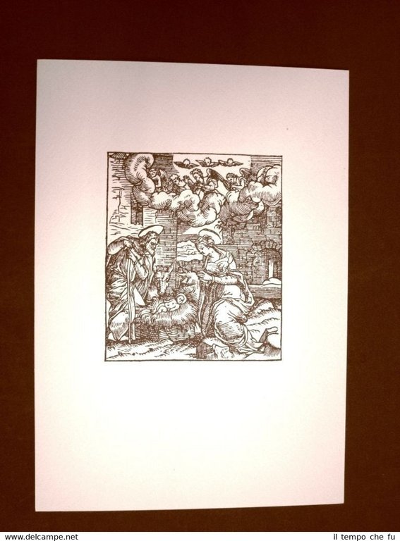 Litografia Natale La Natività Biblia Sacra del 1574 Ristampa