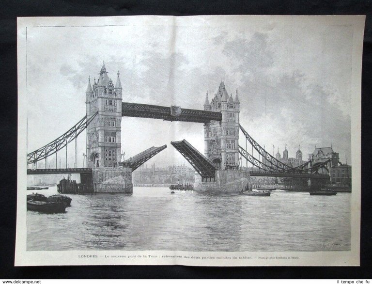 Londra - Il nuovo ponte della Torre Incisione del 1894