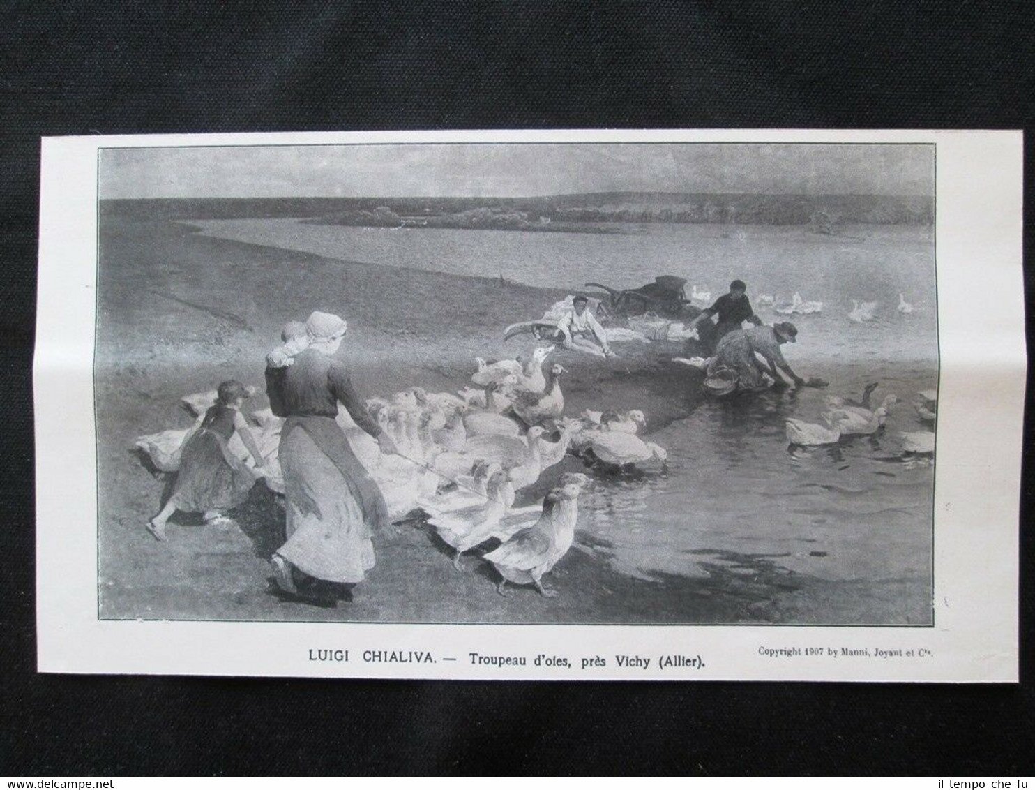 Rara stampa estratta da pubblicazione del 1907 .stampa che ha quindi oltre 111 anni! Luigi Chialiva - Truppa di oche, vicino a Vichy (Allier) Dimensioni Cm 23,00 x 13,00 Illustration 1907 - 017 Qualora vogliate delle scansioni migliori contattateci, soddisferemo ogni vostra richiesta. Paypal Carta di credito Bonifico bancario Accuratamente adagiate su un cartoncino e protette da pellicola trasparente rigida, il tutto viene inserito dentro plico di adeguate dimensioni per proteggerne l'integrità.