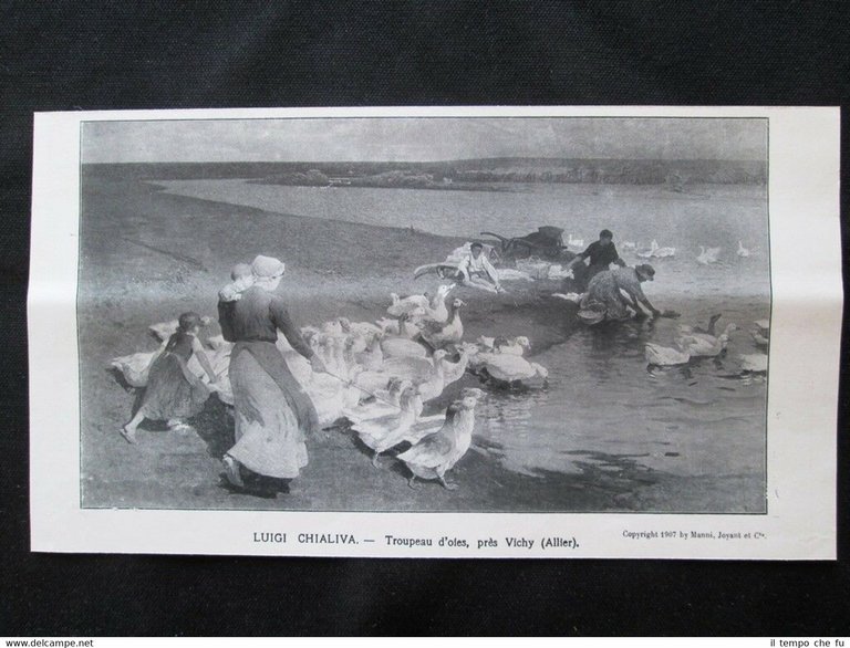 Luigi Chialiva - Truppa di oche, vicino a Vichy (Allier) Stampa del 1907