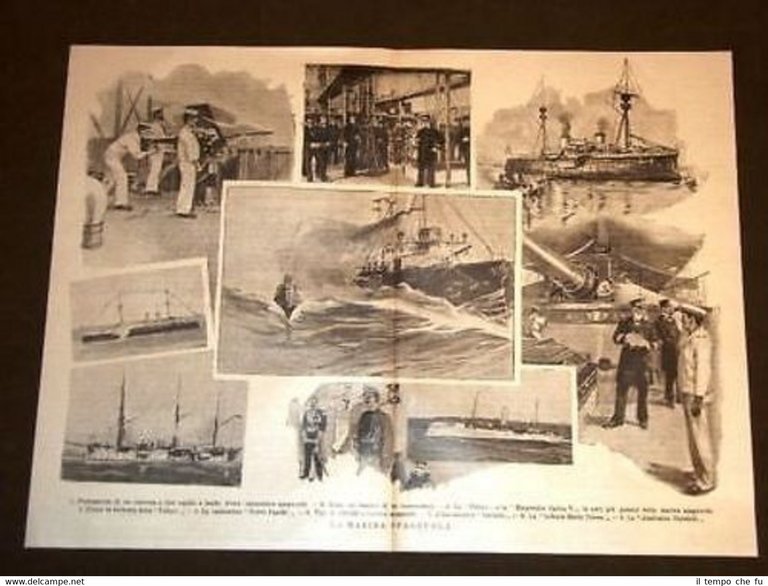 Rara Stampa Estratta da Rivista d'Epoca di fine '800 Enorme Marina Spagnola Corazzata Pelayo Corazzata Emperador Cannoniera Nueva Espana Incrociatore Navarra Infanta Maria Teresa Almirante Oquendo IP1898-028T Dimensioni Cm 35,00 x 26,00 Qualora vogliate delle scansioni migliori contattateci, soddisferemo ogni vostra richiesta. Paypal Carta di credito Bonifico bancario Accuratamente adagiate su un cartoncino e protette da pellicola trasparente rigida il tutto viene inserito dentro plico di adeguate dimensioni per proteggerne l'integrità
