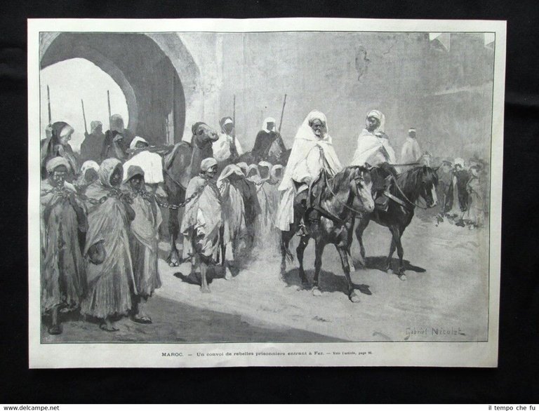 Marocco - Un convoglio di prigionieri ribelli entrano a Fez Stampa del 1903
