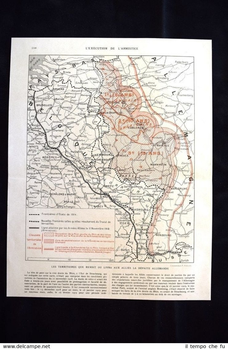Rara stampa Estratta da pubblicazione del 1922 sulla Prima Guerra Mondiale del 1914-1918. .stampa che ha quindi oltre 95 anni! Rare print Extracted from publication of 1922 about the First World War of 1914 -1918. . press that has so over 95 years! Impression rare Extrait de la publication de 1922 sur la Première Guerre mondiale 1914-1918 . . press qui a tellement plus de 95 ans! Seltene druck Gewonnen aus der Veröffentlichung von 1922 auf dem Ersten Weltkrieg 1914-1918 . . Drücken, die so über 95 Jahren! L'exécution de l'armistice Les territoires que rendit ou livra aux alliés la défaite allemande + A Mayence et a Wiesbaden A Wiesbaden, le 15 décembre 1918, dans la salle d'honneur de l'Hotel de Ville: le général Lecomte, à quelques pas en avant du groupe de ses officiers, parle aux notabilités de la ville rangées devant lui, tetes nues. Le premier pont francais jeté sur le Rhin, en avant de Mayence, près d'Oppenheim: il fut construit en quelques heures, le 20 décembre, en présence du général Mangin au fond, la portière en est ouverte pour la circulation des bateaux le long de la rive droite Dimensioni Fronte/retro Cm 28,00 x 36,00+Cm 28,00 x 36,00 ADLG - 024 Qualora vogliate delle scansioni migliori contattateci, soddisferemo ogni vostra richiesta. PaypalCarta di creditoBonifico bancario La stampa verrà inserita all'interno di plico di adeguate dimensioni per proteggerne l'integrità
