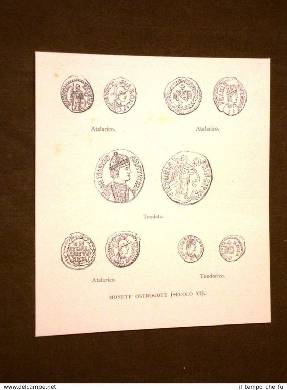 Rara stampa Estratta da pubblicazione dei primi del 1900 Medioevo d'Italia Monete ostrogote o dei barbari Ostrogoti Secolo VI SDI-017 Dimensioni Cm 12,00 x 13,00 Qualora vogliate delle scansioni migliori contattateci, soddisferemo ogni vostra richiesta. PaypalCarta di creditoBonifico bancario Accuratamente adagiate su un cartoncino e protette da pellicola trasparente rigida,il tutto viene inserito dentro plico di adeguate dimensioni per proteggerne l'integrità.