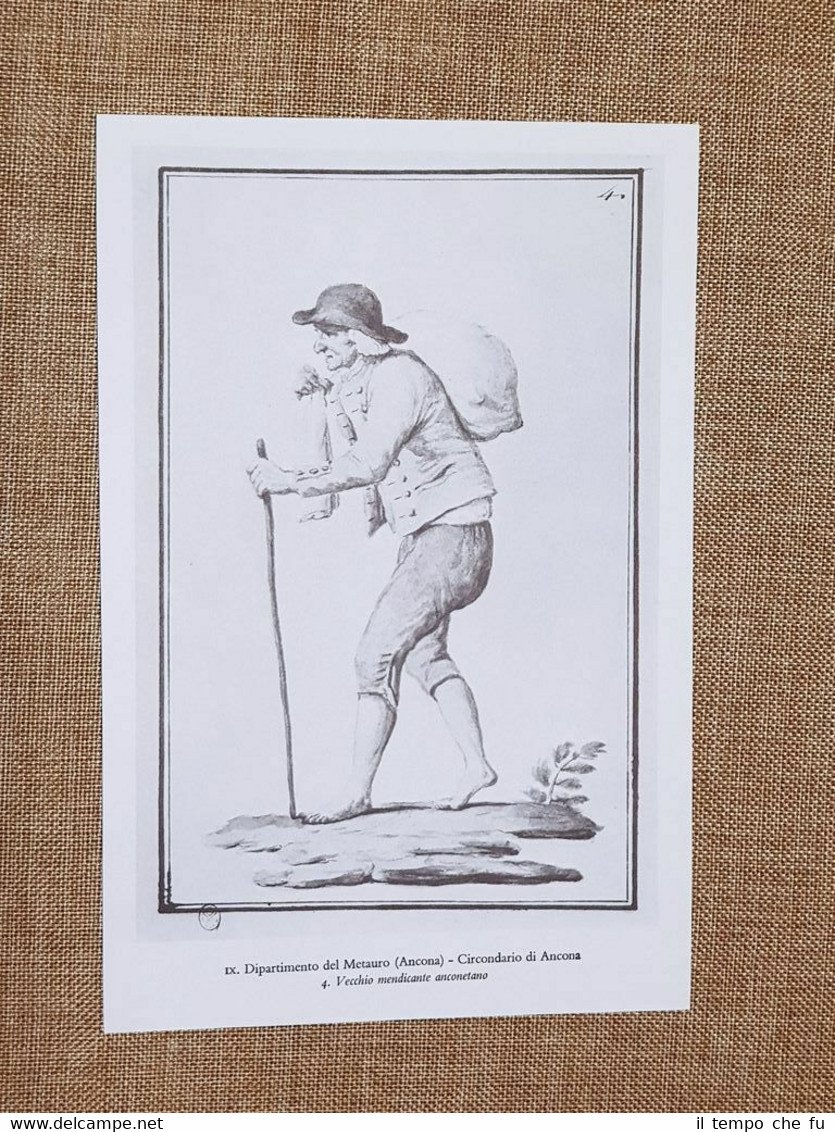 Rara stampa estratta da pubblicazione del 1973 Vecchio mendicante anconetano e Bifolco in guazzerone ?Circondario di Ancona Dipartimento Metauro Moda e costume del Regno Italico o d'Italia 1805-1814 Dimensioni fronte/retro: Cm 13,00 x 21,00 + Cm 13,00 x 21,00 Codice prodotto: II1897-044 Qualora vogliate delle scansioni migliori contattateci, soddisferemo ogni vostra richiesta. Il Regno d'Italia napoleonico, noto comunemente come Regno Italico, fu uno Stato fondato da Napoleone Bonaparte nel 1805, allorquando il generale francese si fece incoronare sovrano della previgente Repubblica Italiana. Il Regno, che comprendeva l'Italia centro orientale e buona parte del settentrione e aveva capitale Milano, non sopravvisse alla caduta del suo monarca, e si disciolse nel 1814. Il Regno napoleonico d'Italia o Regno Italico è considerato dalla storica anglo-italiana Jessie White l'embrione dello Stato unitario italiano costituitosi poi nel 1861. Paypal Carta di credito Bonifico bancario Accuratamente adagiate su un cartoncino e protette da pellicola trasparente rigida, il tutto viene inserito dentro plico di adeguate dimensioni per proteggerne l'integrità.