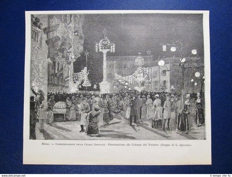 Milano 1885: Commemorazione delle 5 giornate Illuminazione colonna del verziere