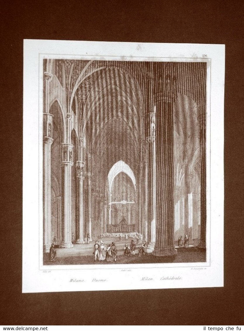Milano Il Duomo L'interno Incisione su rame all'acquaforte del 1835 Audot