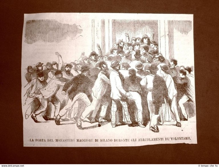Rara Incisione Estratta da Rivista d'epoca del 1866 . .incisione che ha quindi oltre 150 anni! Milano nel 1866 Porta del Monastero Maggiore durante gli arruolamenti dei volontari EP1866-010 Dimensioni Cm 18,00 x 15,00 Qualora vogliate delle scansioni migliori contattateci, soddisferemo ogni vostra richiesta. PaypalCarta di creditoBonifico bancario Accuratamente adagiate su un cartoncino e protette da pellicola trasparente rigida,il tutto viene inserito dentro plico di adeguate dimensioni per proteggerne l'integrità.