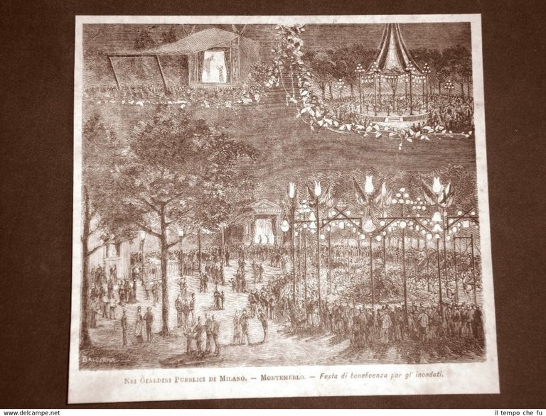 Milano nel 1879 Giadini pubblici Montemerlo Festa beneficienza per gli inondati