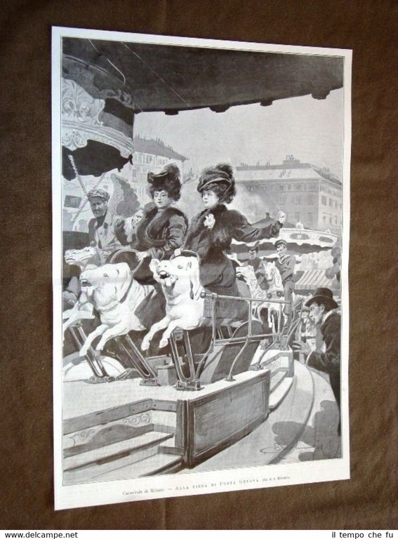 Rara Stampa Estratta da Rivista d'epoca del 1907 Milano nel 1907 Il Carnevale La fiera di Porta Genova II1907-007T Dimensioni Cm 24,00 x 35,00 Qualora vogliate delle scansioni migliori contattateci, soddisferemo ogni vostra richiesta. Paypal Carta di credito Bonifico bancario Accuratamente adagiate su un cartoncino e protette da pellicola trasparente rigida il tutto viene inserito dentro plico di adeguate dimensioni per proteggerne l'integrità