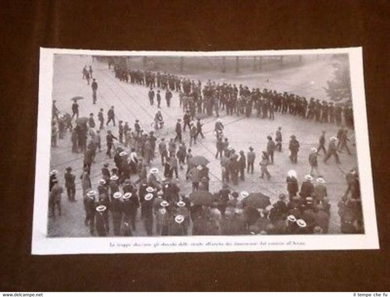 Rara Stampa Estratta da Rivista d'Epoca Milano Sciopero generale Le Truppe sbarrano gli sbocchi delle strade dei dimostranti Comizio all'Arena II1914-024T Dimensioni Cm 24,00 x 15,50 Qualora vogliate delle scansioni migliori contattateci, soddisferemo ogni vostra richiesta. Paypal Carta di credito Bonifico bancario Accuratamente adagiate su un cartoncino e protette da pellicola trasparente rigida il tutto viene inserito dentro plico di adeguate dimensioni per proteggerne l'integrità