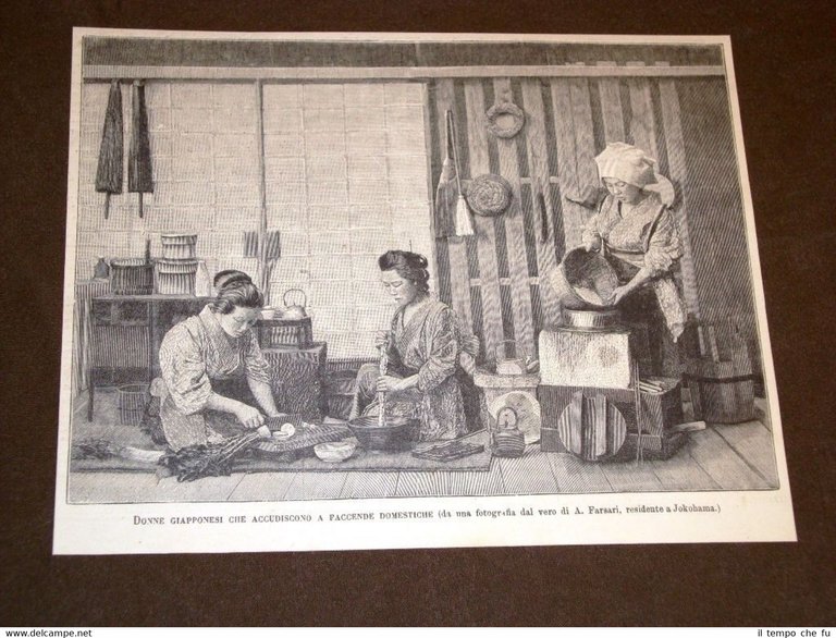 Rara Incisione Estratta da Rivista d'epoca del 1889 . .incisione che ha quindi oltre 125 anni! Moda e costume in Giappone nel 1889 Donne che si dedicano a faccende domestiche II1889-034 Dimensioni Cm 22,00 x 17,00 Qualora vogliate delle scansioni migliori contattateci, soddisferemo ogni vostra richiesta. PaypalCarta di creditoBonifico bancario Accuratamente adagiate su un cartoncino e protette da pellicola trasparente rigida,il tutto viene inserito dentro plico di adeguate dimensioni per proteggerne l'integrità.