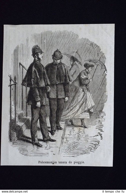 Rara incisione estratta da pubblicazione del 1868. .incisione che ha quindi oltre 150 anni! Policeman in tenuta da pioggia, in Inghilterra Dimensioni Cm 12,00 x 15,00 EP1868 - 007 Qualora vogliate delle scansioni migliori contattateci, soddisferemo ogni vostra richiesta. Paypal Carta di credito Bonifico bancario Accuratamente adagiate su un cartoncino e protette da pellicola trasparente rigida, il tutto viene inserito dentro plico di adeguate dimensioni per proteggerne l'integrità.