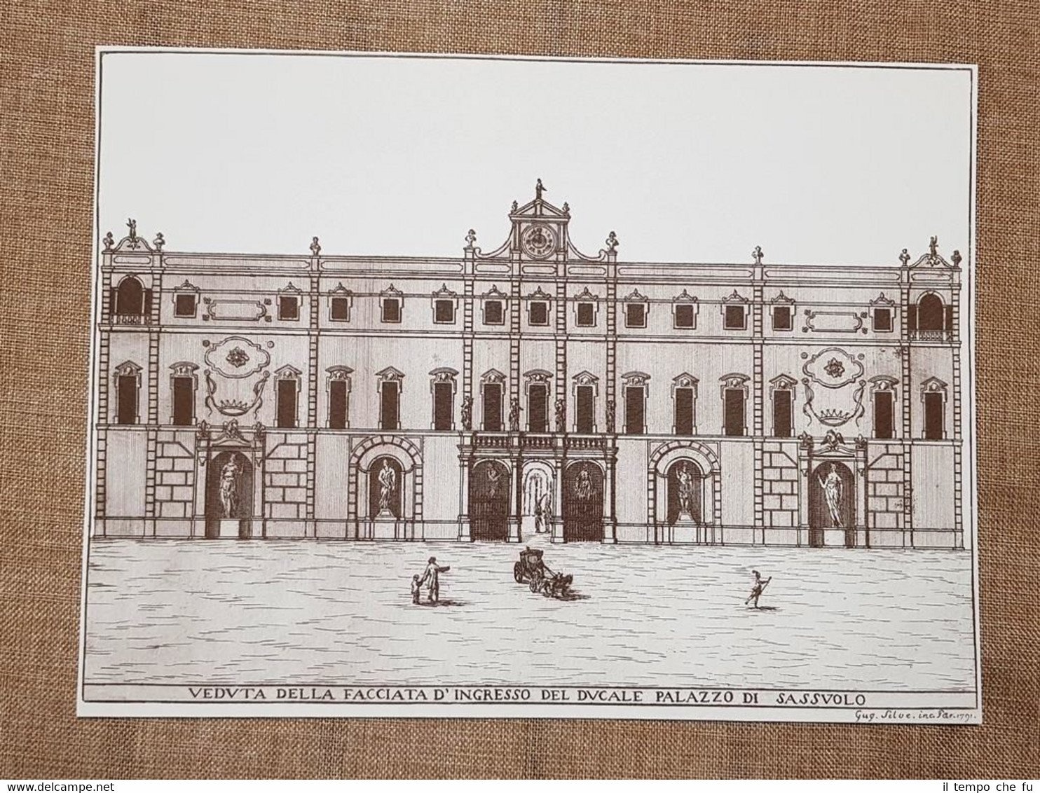 Modena nel 1791 Ingresso Ducale Palazzo di Sassuolo Emilia R.Litografia Ristampa Bellissima litografia stampata su cartoncino Modena nel 1791 Veduta della facciata d'ingresso del Ducale Palazzo di Sassuolo Emilia Romagna Litografia RistampaCodice articolo: VIP-170 Dimensioni: Cm 29,00 x 22,00