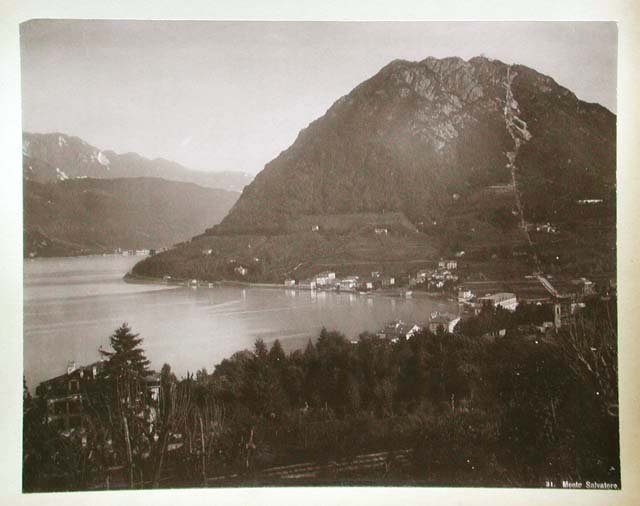 Veduta panoramica del monte, prospiciente il lago. Applicata su cartoncino rigido coevo