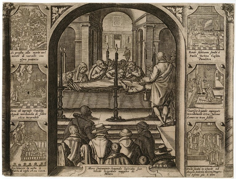 More santamente, havendo lasciata suo Herede lospedale maggiore di Milano
