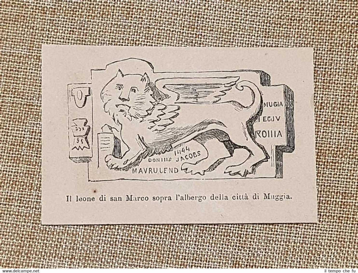 Muggia nel 1875 Leone sopra l'albergo di città Trieste Friuli Venezia Giulia Rara stampa estratta da pubblicazione del 1875Muggia nel 1875 Il Leone sopra l'albergo di città Trieste Friuli Venezia GiuliaCodice articolo: Stapo-072 Dimensioni: Cm 9,00 x 6,00