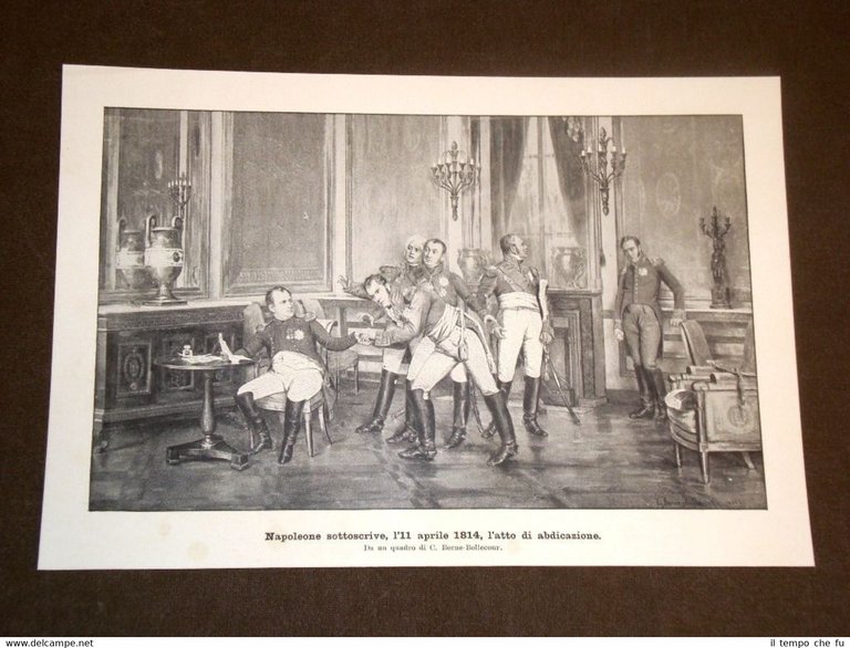 Rara stampa Estratta da introvabile e pregiata opera dei primi del 1900 Napoleone Bonaparte e l'abdicazione dell'11 aprile 1814 Quadro di C.Berne Bellecour KXIX-013 Dimensioni Cm 23,00 x 16,00 Qualora vogliate delle scansioni migliori contattateci, soddisferemo ogni vostra richiesta. PaypalCarta di creditoBonifico bancario Accuratamente adagiate su un cartoncino e protette da pellicola trasparente rigida,il tutto viene inserito dentro plico di adeguate dimensioni per proteggerne l'integrità.