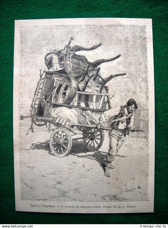 Rara Incisione Napoli ed i Napoletani nel 1882, Il Faccchino che supplisce l'asino (disegno del signor E. Matania) Dimensioni 16x22cm II1882-046 Qualora vogliate delle scansioni migliori contattateci, soddisferemo ogni vostra richiesta. Paypal Carta di credito Bonifico bancario Accuratamente adagiate su un cartoncino e protette da pellicola trasparente rigida il tutto viene inserito dentro plico di adeguate dimensioni per proteggerne l'integrità