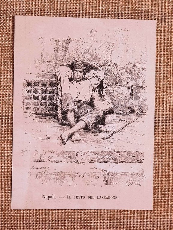 Napoli Il letto del lazzarone Incisione del 1881 Moda e costume Rara incisione estratta da pubblicazione del 1881 Napoli Il letto del lazzarone Moda e costume Codice prodotto: 1881-043 Dimensioni: Cm 9,00 x 12,00