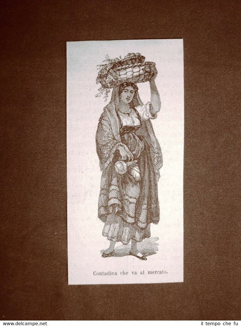 Napoli nel 1863 Contadina che va al mercato Campania Moda e costume