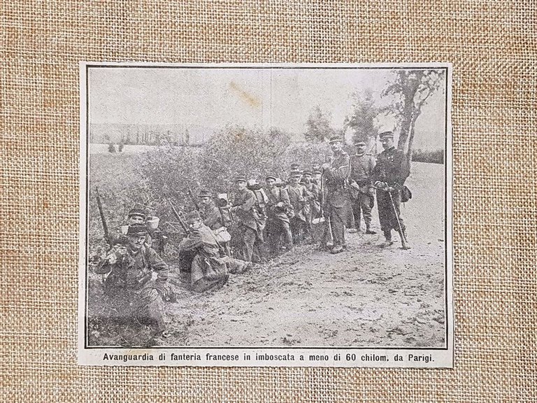 Nei pressi di Parigi nel 1914 Fanteria francese Prima Guerra Mondiale WW1 Rara stampa estratta da pubblicazione del 1914 Nei pressi di Parigi nel 1914 Fanteria francese Prima Guerra Mondiale WW1 Codice prodotto: VIP-188 Dimensioni Cm 12,00 x 10,00