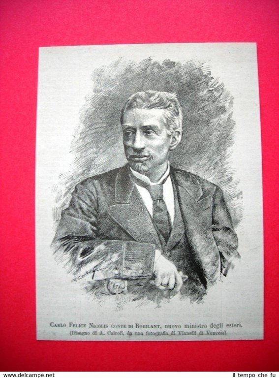 Rara Incisione Nel 1885 Carlo Felice Nicolis, conte di Robilant, nuovo ministro degli esteri del Regno d'Italia (disegno di A. Cairoli, da una foto di Vianelli di Venezia) Dimensioni 12x17cm II1885-040 Qualora vogliate delle scansioni migliori contattateci, soddisferemo ogni vostra richiesta. Paypal Carta di credito Bonifico bancario Accuratamente adagiate su un cartoncino e protette da pellicola trasparente rigida il tutto viene inserito dentro plico di adeguate dimensioni per proteggerne l'integrità