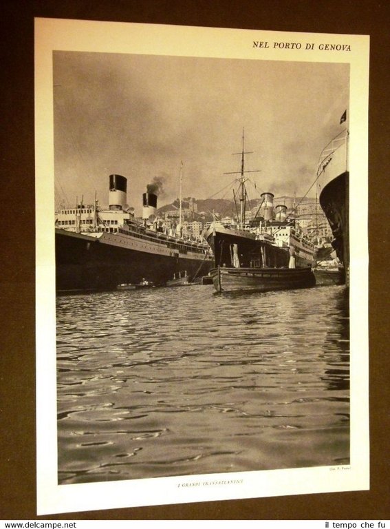 Nel Porto di Genova nel 1928 Grandi Transatlantici Gru Silos Piroscafi