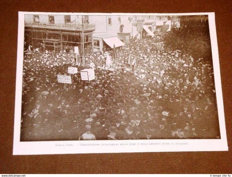 Rara Stampa Estratta da Rivista d'epoca del 1906 Nuova York o New York nel 1906 Dimostrazione anti-Czarista degli Ebrei ed emigrati di Russia II1906-003T Dimensioni Cm 24,00 x 18,00 Qualora vogliate delle scansioni migliori contattateci, soddisferemo ogni vostra richiesta. Paypal Carta di credito Bonifico bancario Accuratamente adagiate su un cartoncino e protette da pellicola trasparente rigida il tutto viene inserito dentro plico di adeguate dimensioni per proteggerne l'integrità
