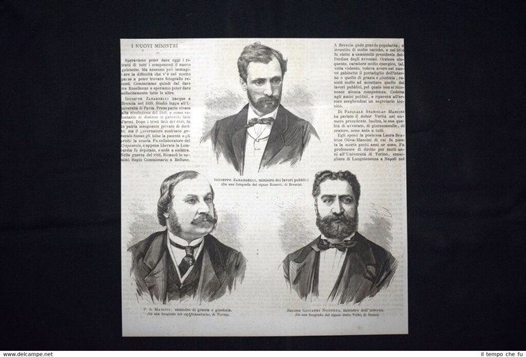 Nuovi ministri 1876: G.Zanardelli - P.S.Mancini - G.Nicotera Incisione del 1876