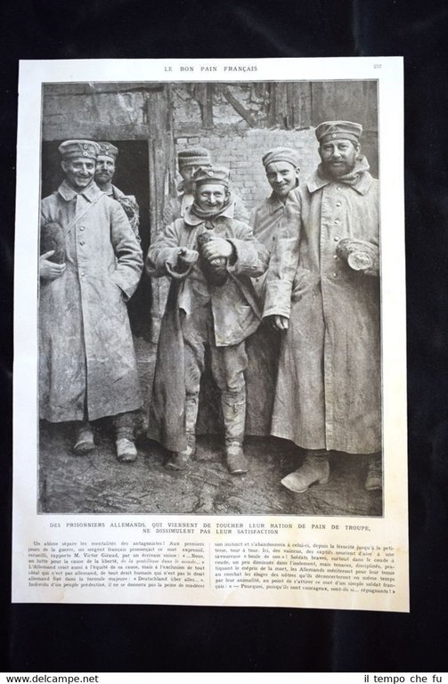 Rara stampa Estratta da pubblicazione del 1922 sulla Prima Guerra Mondiale del 1914-1918. .stampa che ha quindi oltre 95 anni! Rare print Extracted from publication of 1922 about the First World War of 1914 -1918. . press that has so over 95 years! Impression rare Extrait de la publication de 1922 sur la Première Guerre mondiale 1914-1918 . . press qui a tellement plus de 95 ans! Seltene druck Gewonnen aus der Veröffentlichung von 1922 auf dem Ersten Weltkrieg 1914-1918 . . Drücken, die so über 95 Jahren! Le bon pain francais Des prisonniers allemands, qui viennent de toucher leur ration de pain de troupe, ne dissimulent pas leur satisfaction + Notre offensive d'Artois Le 9 mai 1915, à 10 heures du matin, une compagnie alpine, après trois kilomètres parcourus au pas de charge, est entrée dans le cimetière de Souchez qu'elle se hate d'organiser défensivement. A 11 heures 30, la compagnie a recu l'ordre de tenir dans le cimetière, battu en enfilade par une pièce en position au Nord de Souchez elle a dejà beaucoup de morts et de blessés. Le soir, la position devra etre évacuée elle ne sera reprise que trois semaines plus tard Dimensioni Fronte/retro Cm 25,00 x 35,00+Cm 25,00 x 35,00 ADLG - 012 Qualora vogliate delle scansioni migliori contattateci, soddisferemo ogni vostra richiesta. PaypalCarta di creditoBonifico bancario La stampa verrà inserita all'interno di plico di adeguate dimensioni per proteggerne l'integrità