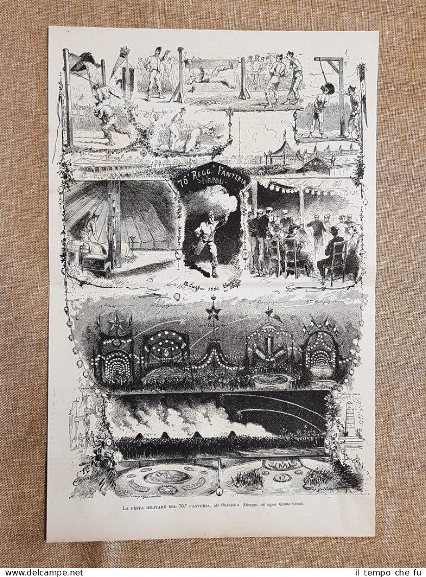 Oleggio nel 1880 Festa militare del 76 fanteria Piemonte Disegno di Quinto Cenni Rara stampa estratta da pubblicazione del 1880 Oleggio nel 1880 Festa militare del 76° fanteria Piemonte Disegno di Quinto CenniCodice articolo: II1880-056Dimensioni: Cm 23,00 x 36,00