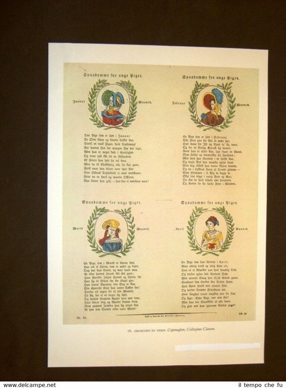 Stampa estratta da pubblicazione di metà '900 Oroscopo in versi Collezione Clausen Copenaghen + Un Croato con sua moglie Biblioteca Reale Copenaghen Arte popolare scandinava Svandinavia STAPO - 034 Dimensioni Fronte/retro Cm 21,00 x 30,00 + Cm 21,00 x 30,00 Qualora vogliate delle scansioni migliori contattateci, soddisferemo ogni vostra richiesta. Paypal Carta di credito Bonifico bancario Accuratamente adagiate su un cartoncino e protette da pellicola trasparente rigida, il tutto viene inserito dentro plico di adeguate dimensioni per proteggerne l'integrità.